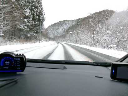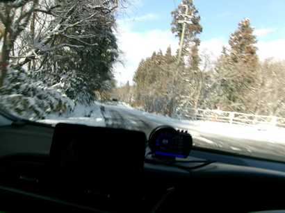 うーん、狭い。圧雪路。